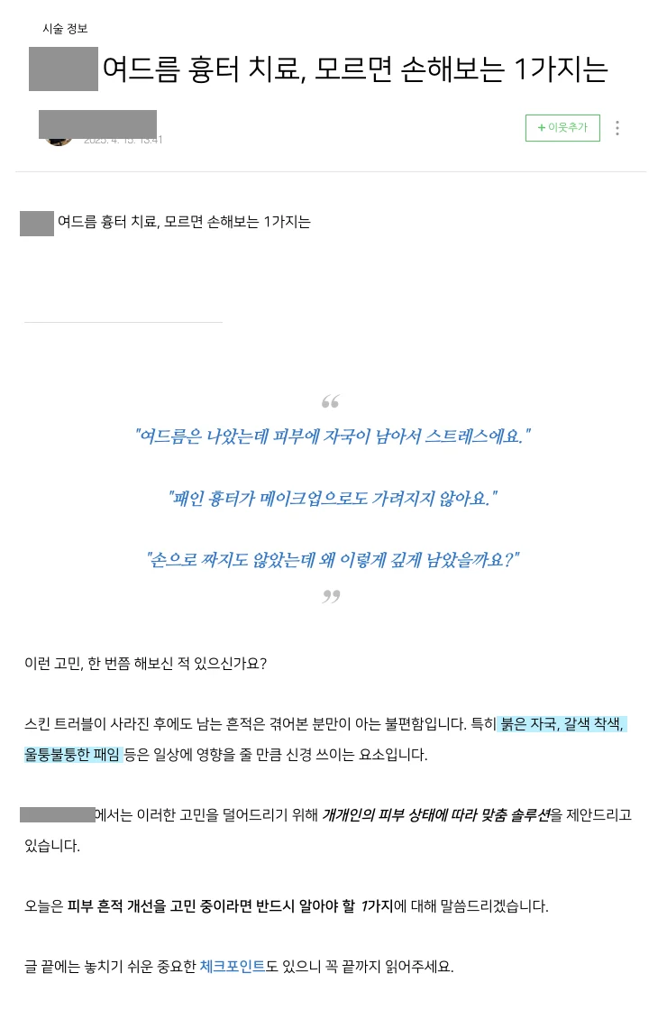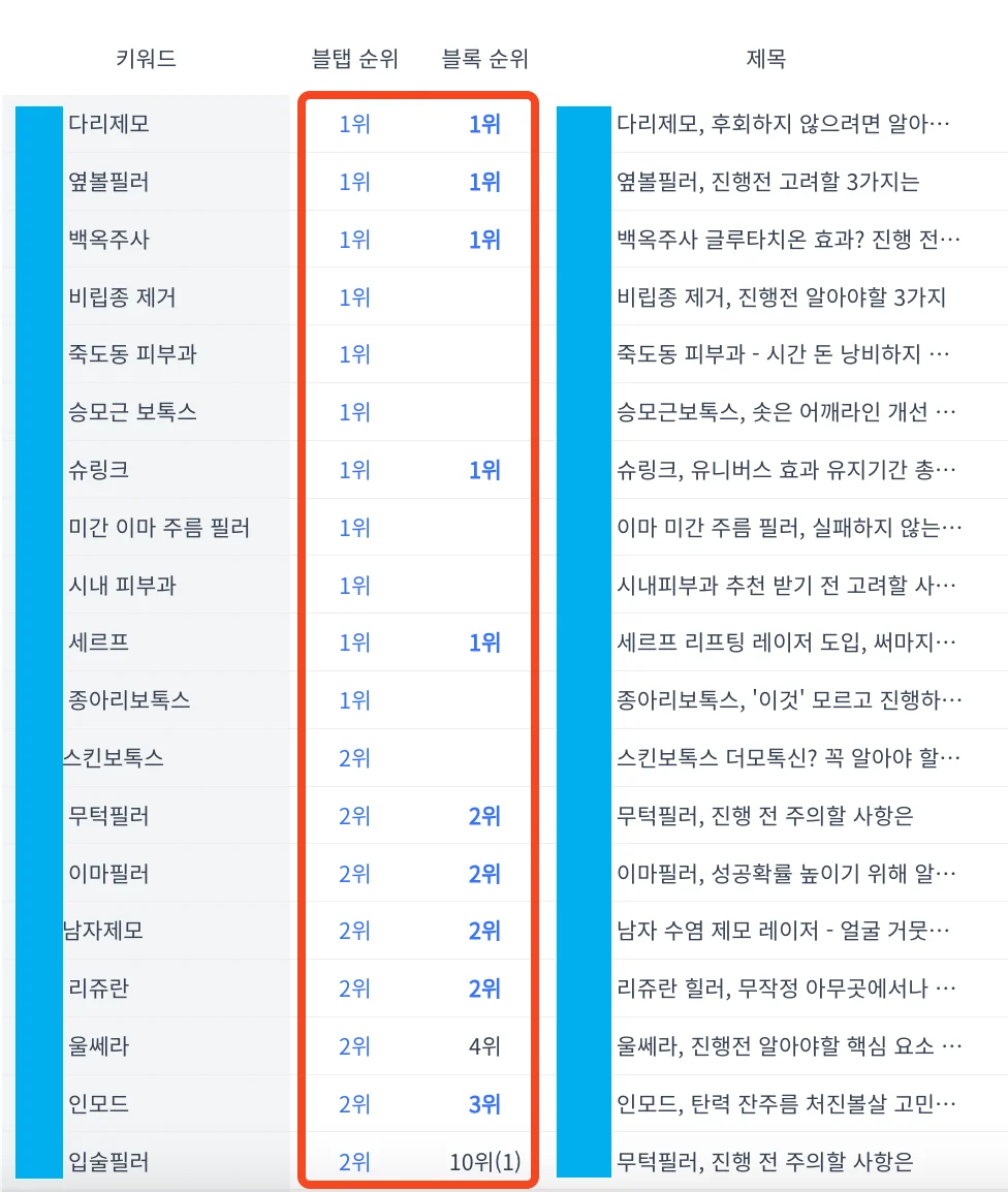 - 실환자 검색어 기반 ('양산 여드름 치료' 등)